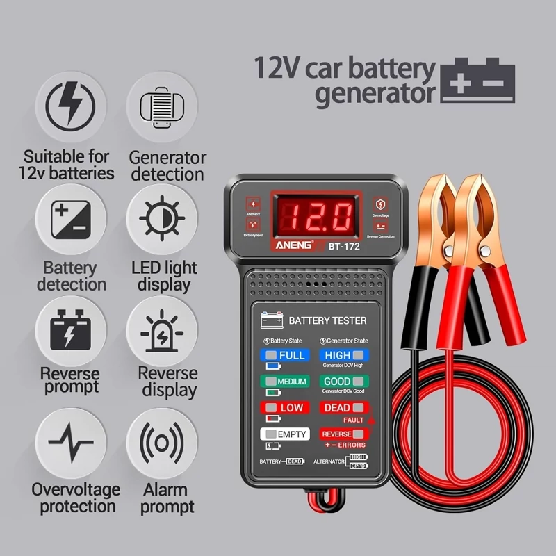 تستر باتری و دینام 12 ولت | A10243 | نمایش LED |