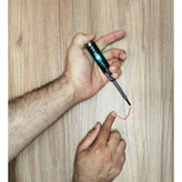 محصول فازمتر یوتولز چند کاره مشکی سیلیکونی با سری چهارسو دوسو همزمان با قابلیت گشتاور بالا جهت بستن پیچ، تشخیص فاز و نول، تشخیص قطعی در مسیر و تشخیص جریان به صورت القایی، یک ابزار حرفه ای و همه فن حریف است که برای استفاده در صنایع برق و الکترونیک طراحی شده است. این محصول با استفاده از سنسورهای خاص، قادر است فاز و نول را به صورت دقیق تشخیص دهد و اطلاعات لازم را به کاربر ارائه کند. همچنین، با قابلیت تشخیص قطعی در مسیر، این دستگاه به شما کمک می کند تا به راحتی مشکلات در مسیر برق را شناسایی کنید و آنها را برطرف کنید. با توجه به قابلیت تشخیص جریان به صورت القایی، این محصول قادر است جریان های الکتریکی را از روی روکش سیم و کابل اندازه گیری کند و به شما در تسریع عیب یابی کمک میکند. همچنین، با سری مغناطیسی ، شما را قادر خواهد ساخت پیچ ها را در شرایط غیر عادی بسته و به شما در انجام کارهای سخت و زمان بر کمک کند. مناسب برای پیدا کردن کابل آیفون و آنتن از طریق تست اتصال. این محصول با طراحی مدرن و سبک، قابل حمل است و می توانید به راحتی در کیف ابزار خود حمل کنید. با خرید این محصول، شما به راحتی می توانید از امنیت بیشتری در استفاده از دستگاه های برقی خود لذت ببرید. تست به صورت اتصال به فاز چراغ سبز و قرمز روشن میشود و نول چراغ سبز به تنهایی (توجه داشته باشید از انجایی که سیم نول فاقد جریان است هر سیم و شی ای که دارای زمین باشد را نول شناسایی میکند) جهت تستر اتصال یک مسیر چراغ سبز نشاندهنده اتصال است جهت کارکرد به صورت القایی در حالی که با انگشت انتهای آن را لمس کرده اید نوک فازمتر را به سیم نزدیک کرده در صورت روشن شده چراغ سبز هادی مورد نظر دارای جریان فاز است همواره فازمتر های القایی دارای خطای جزیی می باشند که یکی از راههای کاهش این خطا ها جدا کردن و فاصله دادن سیم مورد نظر از سیم های دیگر است