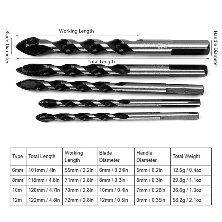 خرید ست 5عددی مته نیزهای کارباید A1071 – نوک تنگستن کارباید و طراحی مارپیچ برای سوراخکاری دقیق کاشی، سرامیک، شیشه، بتن سبک و آجر، با دوام و عمر طولانی.