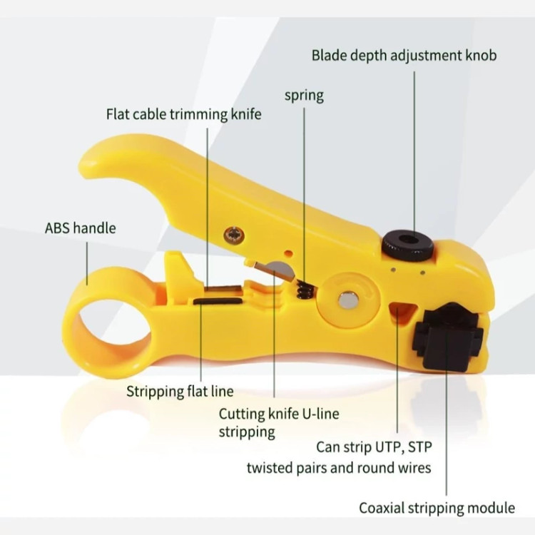آچار استریپر و سیم لخت کن شبکه همه کاره A1077 با قابلیت برش و لختکردن انواع کابل شبکه، تلفن و کواکسیال، ساخته شده از بدنه ABS مقاوم و تیغههای فولادی تیز، مناسب برای نصابان شبکه و برقکاران حرفهای. آچار استریپر و سیم لخت کن شبکه همه کاره A1077 یک ابزار چندمنظوره و ضروری برای کار با کابلهای شبکه، تلفن و کواکسیال است. این ابزار با طراحی ارگونومیک و بدنه ABS مقاوم، کاربری آسان و طول عمر بالا را تضمین میکند. تیغههای فولادی سختکاری شده آن، برش دقیق و تمیز روکش کابل را بدون آسیب به رشتههای داخلی انجام میدهند. مکانیزم تنظیم عمق برش، امکان استفاده برای انواع کابل با قطرهای مختلف را فراهم میکند. این آچار علاوه بر لختکردن کابل، قابلیت برش سیم و حتی جداسازی روکش کابلهای扁 و گرد را دارد و برای نصابان شبکه، تکنسینهای مخابرات و برقکاران یک انتخاب ایدهآل است. ویژگیها: مناسب برای کابل شبکه (CAT5/CAT6)، تلفن و کواکسیال بدنه ABS مقاوم و سبک تیغههای فولادی سختکاری شده با برش دقیق قابلیت تنظیم عمق برش طراحی ارگونومیک برای استفاده طولانیمدت بدون خستگی عملکرد چندکاره: لختکردن، برش و جداسازی روکش کابل کاربردها: نصب و تعمیر شبکههای کامپیوتری کارهای مخابراتی و تلفنی آمادهسازی کابل برای سوکتزنی پروژههای برق و الکترونیک آچار استریپر شبکه، سیم لخت کن شبکه، استریپر کابل شبکه، آچار شبکه همه کاره، سیم لخت کن کواکسیال، ابزار نصب شبکه خرید آچار استریپر و سیم لخت کن شبکه همه کاره A1077 – بدنه ABS مقاوم، تیغه فولادی تیز، مناسب برای کابل شبکه، تلفن و کواکسیال، با قابلیت تنظیم عمق برش و طراحی ارگونومیک.
