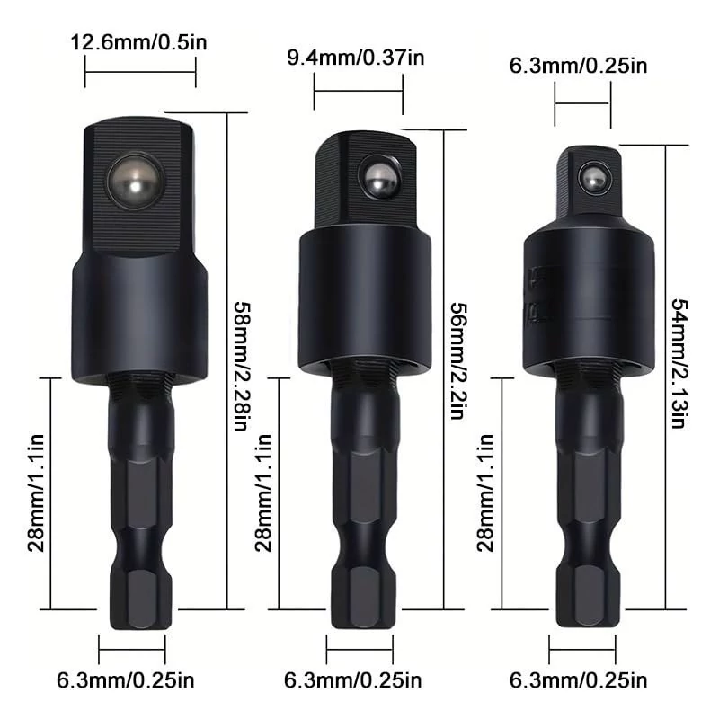 مجموعه 3 عددی رابط لقلقه بکس سر دریلی 1/4، 3/8 و 1/2 اینچ A1075