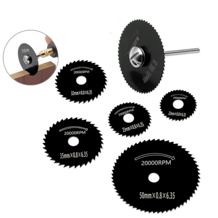 مجموعه 6 عددی تیغ اره مینیاتوری HSS شامل 5 صفحه برش گرد در سایزهای مختلف به همراه دنباله اتصال، مناسب برای فرز انگشتی و ابزارهای چرخشی جهت برش ظریف چوب، پلاستیک و فلزات نازک. ویژگیها شامل 5 صفحه برش گرد HSS + 1 دنباله اتصال جنس فولاد تندبر (HSS) با دوام و برش تمیز مناسب برش چوب، پلاستیک، فیبر، MDF و فلزات نازک سازگار با فرز انگشتی، درمل و ابزارهای چرخشی مشابه قطرهای متنوع برای برشهای دقیق وزن بسته: 49.3 گرم صفحه برش فرز انگشتی، تیغ اره مینیاتوری HSS، دیسک برش درمل، صفحه برش مینیاتوری با دنباله، ست صفحه برش 6 عددی ست 6 عددی صفحه برش HSS فرز انگشتی با دنباله A1080 – شامل 5 دیسک برش گرد و 1 شفت اتصال، مناسب برای برش ظریف چوب، پلاستیک و فلزات نازک با فرز انگشتی و ابزارهای چرخشی.