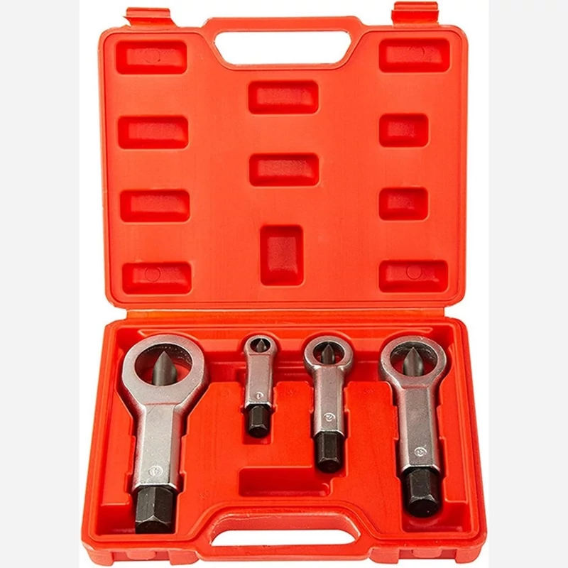 متا دیسکریپشن کیت مهرهشکن چهار عددی برند UTOOLS مدل A10170 شامل ابزارهایی با تیغه برش داخلی، بدنه فولادی مقاوم و طراحی ششضلعی برای بازکردن مهرههای زنگزده یا قفلشده. مناسب برای تعمیر خودرو و ماشینآلات صنعتی.