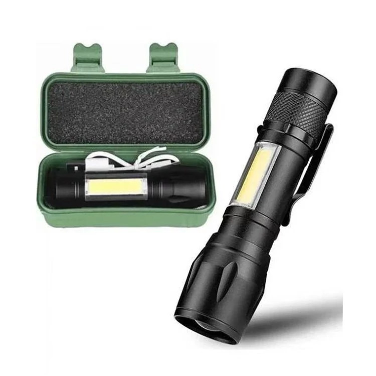 مشخصات فنی کلیدی: این چراغ قوه با توان تقریبی 3W، قابلیت زوم دستی (Zoom) برای تنظیم کانون نور را داراست. دارای دو منبع نوری اصلی و جانبی است: LED در سر (برای نور قوی و متمرکز) و COB (برای نور ملایم و گسترده). این مدل دارای باتری داخلی با زمان شارژ کوتاه 1 تا 1.5 ساعت و زمان نوردهی بین 1.5 تا 2.5 ساعت است. برد نوردهی آن بین 30 تا 100 متر اعلام شده و از طریق کابل USB (موجود در پکیج) شارژ میشود.