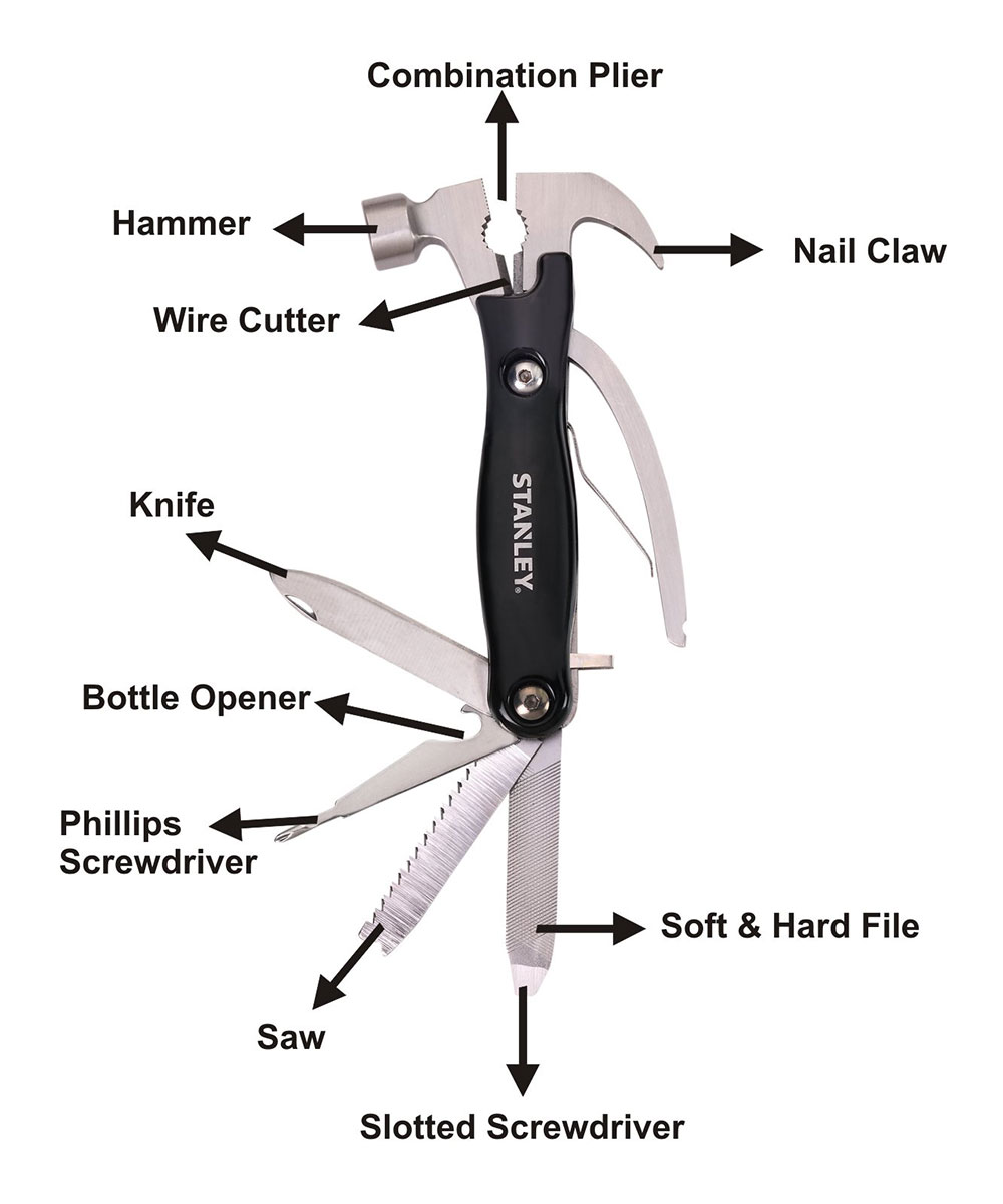 11 ابزار کاربردی در یک ابزار با ابعاد فشرده و جمعوجور یک هدیه مناسب برای افراد فنی و علاقهمندان به طبیعتگردی طراحی ارگونومیک و خوش دست با امکان استفاده راحت بدنه مستحکم از جنس فولاد ضدزنگ با مقاومت بالا ایدهآل برای استفاده در خانه، خودرو، هنگام سفر و ... نگهداری و جابهجایی آسان در کولهپشتی، داشبورد، کیف ابزار و ... مجهز به سیستم قفل ابزارها جهت افزایش ایمنی