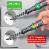مشخصات فنی کلیدی: این فازمتر القایی (تستر ولتاژ) با استفاده از سه باتری دکمهای LR41 کار میکند. نوک آن از فولاد آلیاژی مقاوم ساخته شده و برای تشخیص ولتاژهای متناوب (AC) و جریان مستقیم (DC) کاربرد دارد. مهمترین قابلیت آن، سیستم تشخیص دو رنگ است که فاز (قرمز/سبز) را از نول (سبز) تفکیک میکند .