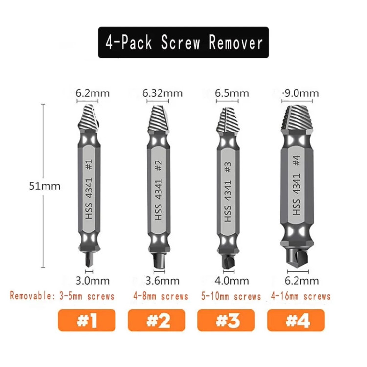 ست 4 عددی مته و ابزار بازکن پیچ شکسته(هرزبازکن) مدل A1034