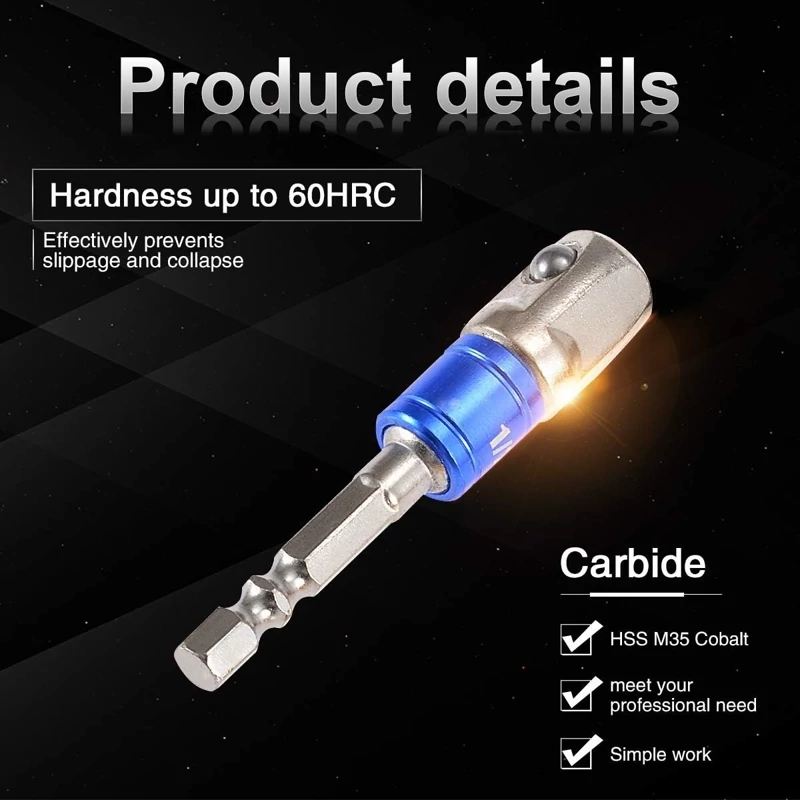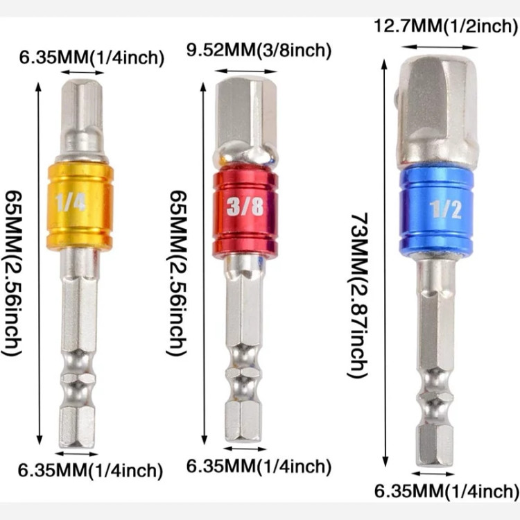 ویژگیها شامل درایور 1/2 اینچ، 3/8 اینچ و 1/4 اینچ شفت ششگوش استاندارد 1/4 اینچ سر مغناطیسی قوی برای جلوگیری از افتادن بکس جنس: فولاد کرومواندیوم با پوشش ضدسایش حلقههای رنگی برای تشخیص فوری سایز کاربردها تعویض سریع سری بکس در تعمیرات خودرو و ماشینآلات استفاده با دریل دستی، شارژی و پیچگوشتی برقی مونتاژ و دمونتاژ سازههای فلزی و چوبی