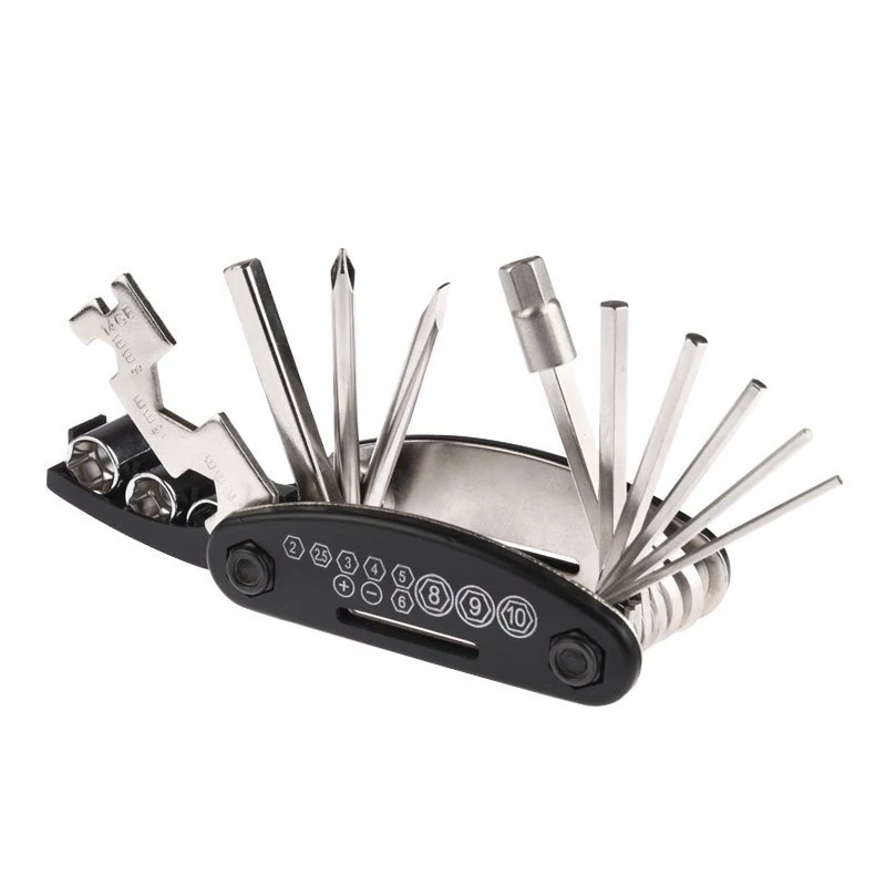 آچار 16 کاره مدل A10108 یک ابزار تاشو و قابلحمل است. ساختهشده از فولاد سختکاریشده با آبکاری ضدزنگ، شامل آچار آلن، پیچگوشتی، آچار لولهای، آچار اسپوک. مناسب برای دوچرخهسواران، تعمیرکاران و علاقهمندان به تعمیرات خانگی و مسیر. ویژگیها (Bullet Points) طراحی تاشو و جمعوجور، مناسب برای حمل در کیف یا جیب ساختهشده از فولاد آلیاژی با آبکاری ضدزنگ و مقاوم در برابر سایش شامل آچار آلن سایزهای: 2 / 2.5 / 3 / 4 / 5 / 6 میلیمتر پیچگوشتی دوسو و چهارسو آچار بکس سایزهای: 8 / 9 / 10 میلیمتر آچار تخت سایزهای: 8 / 10 / 15 میلیمتر آچار اسپوک سایز 14GE مناسب برای تعمیرات دوچرخه، اسکوتر، تجهیزات ورزشی و خانگی کلمات کلیدی (SEO Keywords) آچار 16 کاره دوچرخه، ابزار چندمنظوره جیبی، آچار آلن تاشو، آچار اسپوک، آچار لولهای، ابزار تعمیر دوچرخه، Bike Multi Tool متا دیسکریپشن (Meta Description) خرید آچار 16 کاره مدل A10108 – ابزار جیبی تاشو شامل آچار آلن، پیچگوشتی، آچار اسپوک و لولهای، ساختهشده از فولاد سختکاریشده با آبکاری ضدزنگ، مناسب برای تعمیرات سریع در مسیر یا خانه.