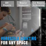✅ مناسب برای تعمیر خودرو، کارگاهها، برقکاری، کمپینگ و استفاده اضطراری ✅ طراحی سبک و قابلحمل ✅ قابلیت استفاده روی میز، آویزان یا متصل به سطوح فلزی