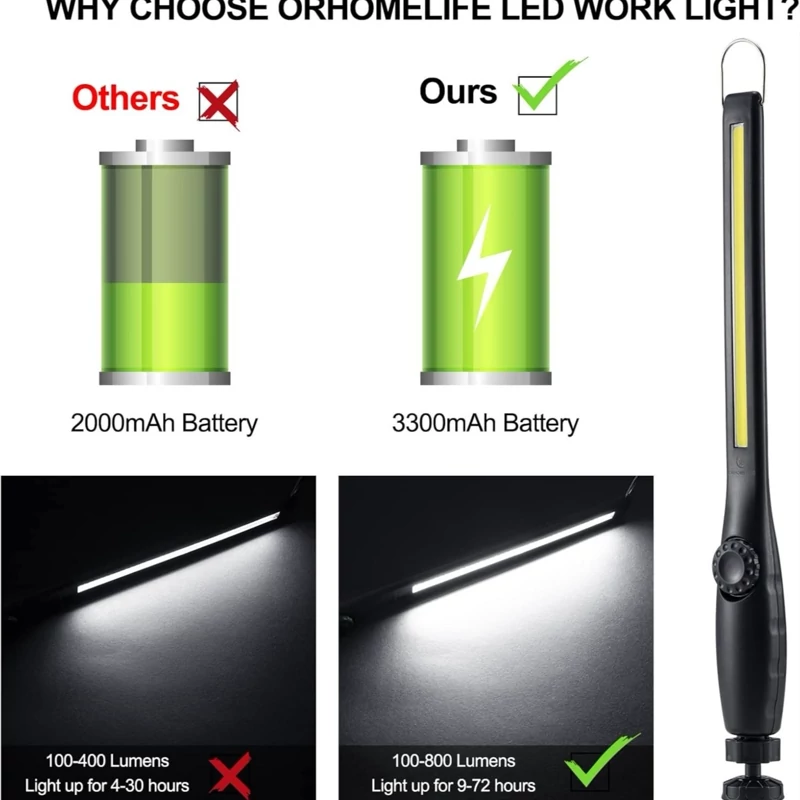 این چراغ با نوار LED پرقدرت، نور یکنواخت و وسیعی تولید میکند که برای کار در محیطهای تاریک یا کمنور ایدهآل است.