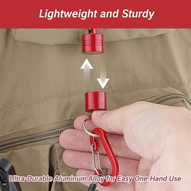 آویز مگنتی A1082 با مگنت قوی و کارابین آلومینیومی سبک، مناسب برای اتصال و جداسازی سریع کلید، انبر ماهیگیری یا ابزارهای کوچک در فعالیتهای روزمره و فضای باز. ویژگیها ( مگنت قوی برای اتصال و جداسازی سریع کارابین آلومینیومی سبک و مقاوم طراحی ضدزنگ و مقاوم در برابر رطوبت مناسب برای کلید، انبر ماهیگیری، چاقو و ابزارهای کوچک حمل آسان و وزن سبک (حدود 22 گرم) ایدهآل برای ماهیگیری، کمپینگ و کوهنوردی آویز مگنتی ابزار، آویز مغناطیسی با کارابین، کارابین مغناطیسی، هولدر مغناطیسی ابزار، Magnetic Tool Holder خرید آویز مگنتی با کارابین A1082 – مجهز به مگنت قوی و کارابین آلومینیومی سبک، مقاوم در برابر رطوبت، مناسب برای اتصال سریع ابزار و کلید در ماهیگیری، کمپینگ و کوهنوردی.