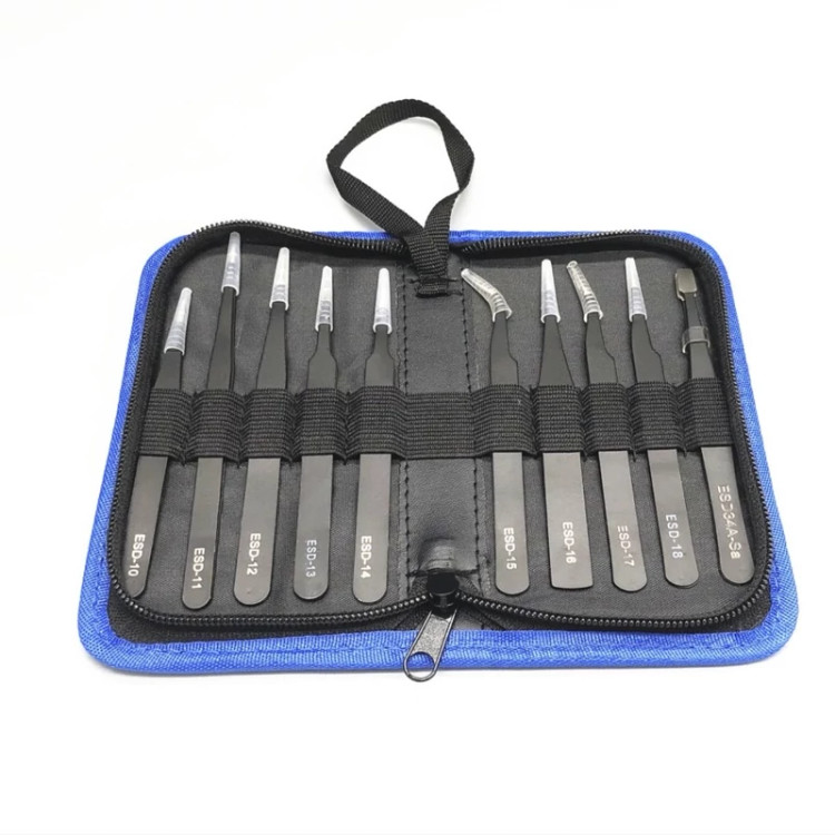 خرید ست پنس 10 عددی ESD با کیف مخصوص مدل A10256 – شامل 10 عدد پنس ضدالکتریسیته ساکن با نوکهای متنوع، مناسب برای تعمیرات موبایل، لپتاپ، بردهای الکترونیکی، صنایع ظریف و جواهرسازی.