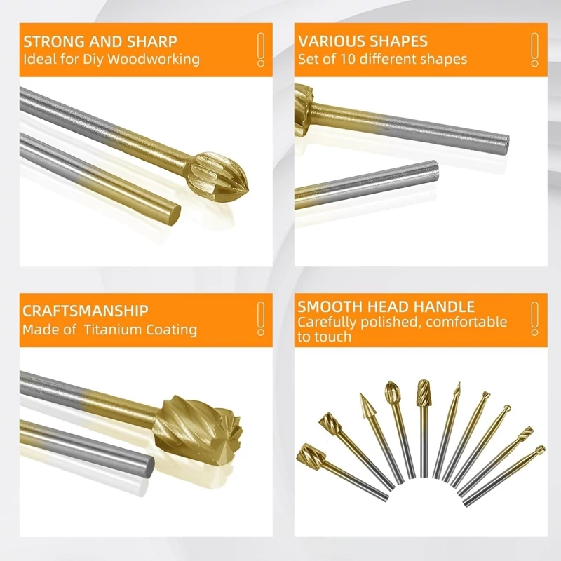 ویژگیها تعداد 10 عدد سری فرز فرم انگشتی جنس فولاد HSS با عملیات سختکاری و ابکاری" تیتانیوم" انواع شیارهای مخصوص منبتکاری "چوب" اتصال سریع و مطمئن به شیلنگ ابزار فرز انگشتی طراحی ارگونومیک برای کار طولانی بدون خستگی کاربردها منبتکاری و حکاکی چوب ایجاد بافت و جزئیات دکوراتیو پرداخت و صیقلکاری سطوح چوبی کار روی انواع پروژههای نجاری و هنرهای دستی