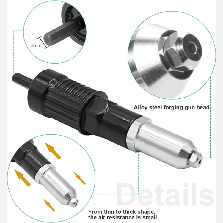 پرچکن A10119 ابزاری حرفهای برای نصب انواع میخپرچ با استفاده از دریل شارژی یا برقی. طراحی ارگونومیک، نصب آسان، و عملکرد سریع بدون نیاز به ابزار دستی. مناسب برای کارهای صنعتی، ساختمانی، مکانیکی و DIY. ویژگیها (Bullet Points) قابل اتصال به انواع دریل شارژی، برقی و بادی نصب سریع میخپرچ با عملکرد چرخشی دریل مناسب برای سایزهای رایج میخپرچ: 2.4 / 3.2 / 4.0 / 4.8 میلیمتر طراحی ارگونومیک با بدنه آلومینیومی و سری فولادی سختکاریشده دارای سری قابل تعویض برای انواع پرچ مناسب برای فلز، پلاستیک، چوب و سطوح ترکیبی کاهش خستگی دست در مقایسه با پرچکن دستی مناسب برای تعمیرات، ساخت سازه، نصب قطعات و پروژههای خانگی کلمات کلیدی (SEO Keywords) پرچکن سر دریلی، ابزار نصب میخپرچ، پرچکن برقی، Rivet Gun Drill Adapter، پرچکن آلومینیومی، ابزار صنعتی پرچ متا دیسکریپشن (Meta Description) خرید پرچکن سر دریلی مدل A10119 – قابل اتصال به دریل، مناسب برای نصب سریع انواع میخپرچ، طراحی ارگونومیک و مقاوم، مناسب برای پروژههای صنعتی و خانگی.